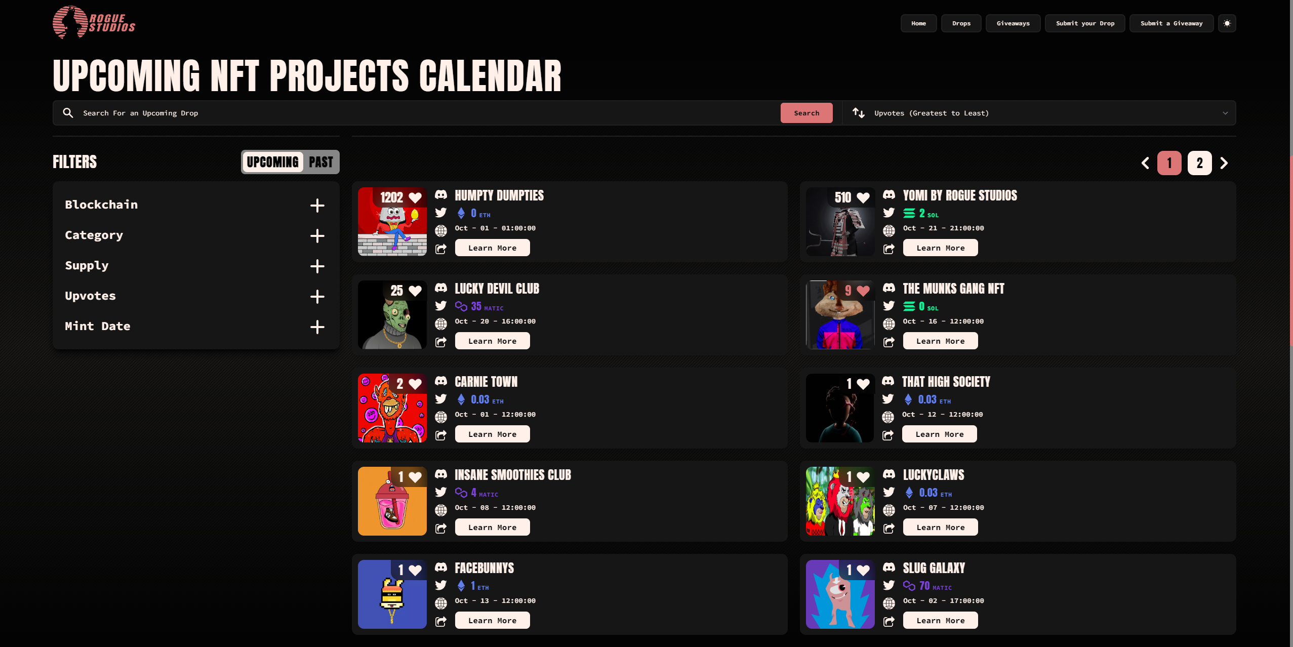 An upvote feature was also integrated to help provide insights into which upcoming drop has the most hype behind it. The upvote feature acts as a leaderboard that runs 24/7 and provides projects with the ability to bring more exposure to their drop if they have their communities' support.\
